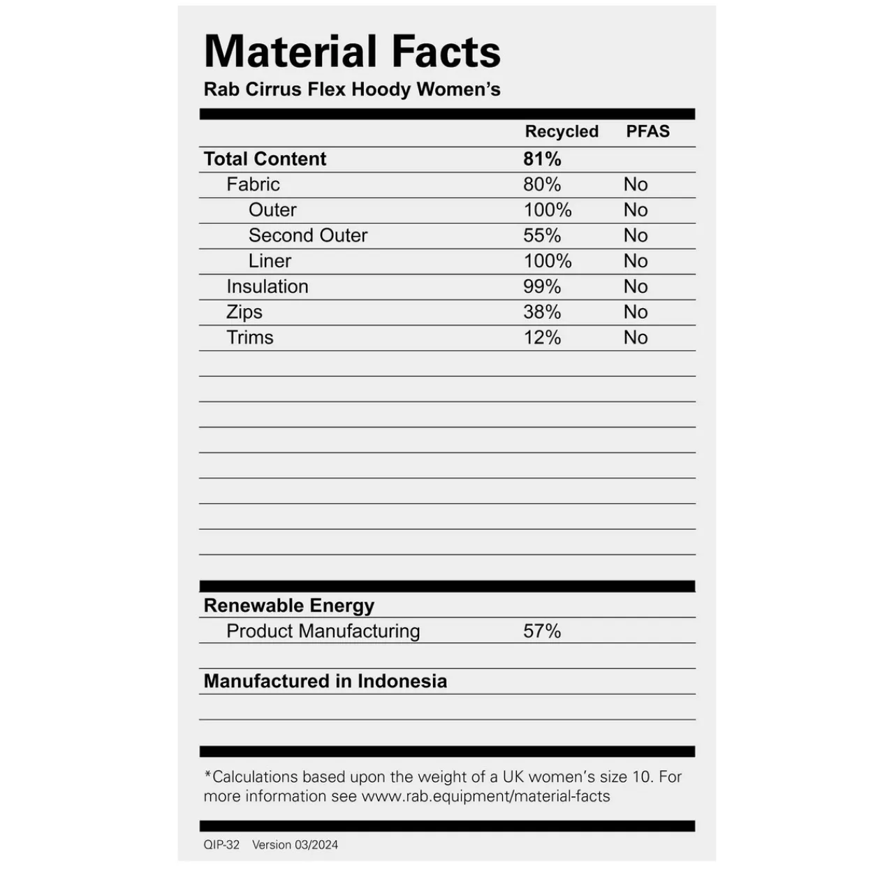 - 20D Recycled Pertex® Quantum lining (38gsm) with fluorocarbon free DWR