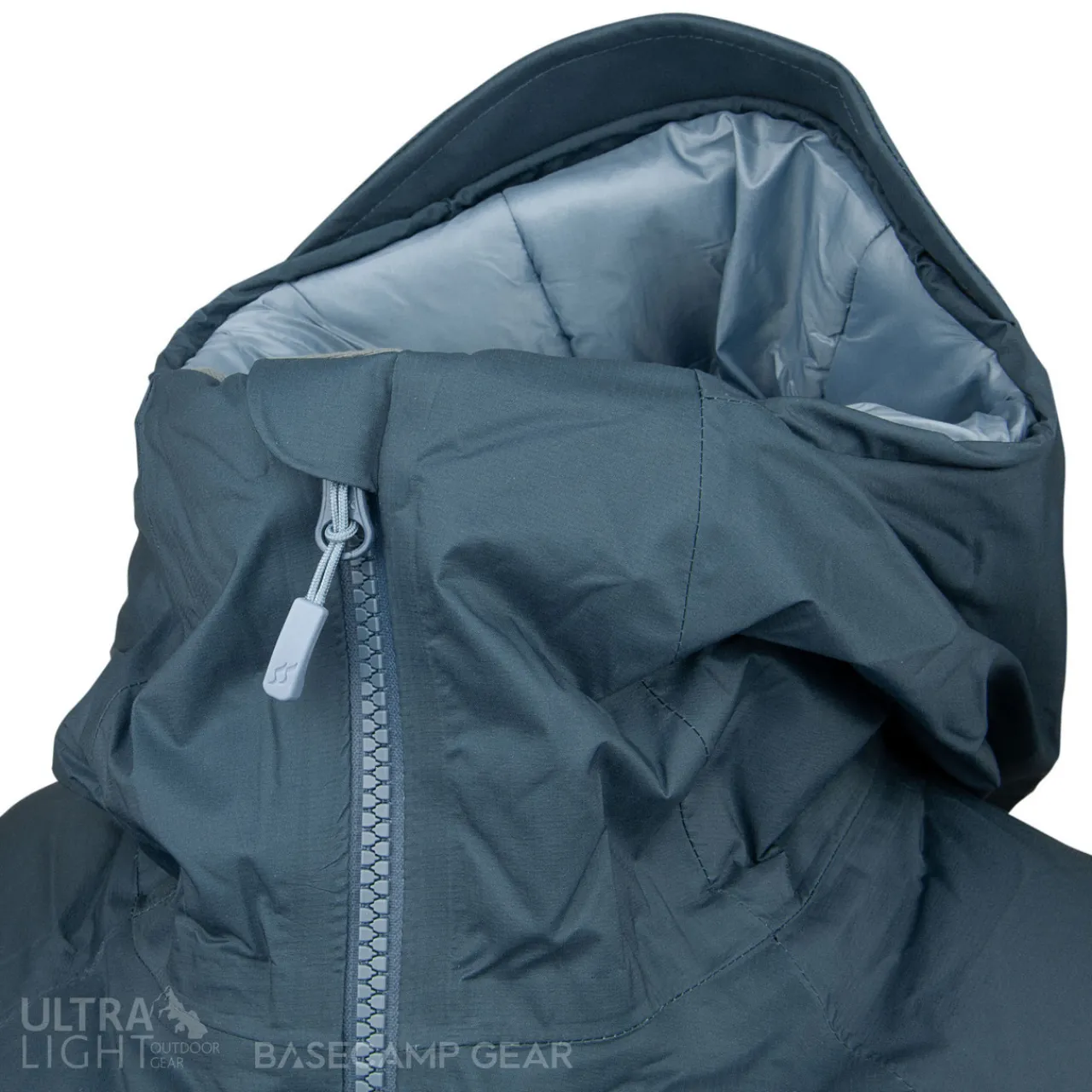 Though this down jacket uses 700 fill recycled down as its primary insulation, the jacket also utilizes synthetic insulation in the hood and the cuffs, the areas that are most likely to get wet. This ensures you won’t lose heat and loft if they get wet, but also using synthetic insulation in the hood as opposed to down, which dampens sound, allows you to hear much better. This is brilliant if the weather turns bad and you need to coordinate with a rope partner.