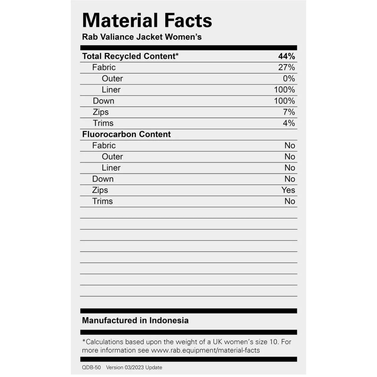 - Main Insulation: 700FP Recycled Down with Nikwax Fluorocarbon-Free Hydrophobic Finish (191g/ 6.7oz Size 10)