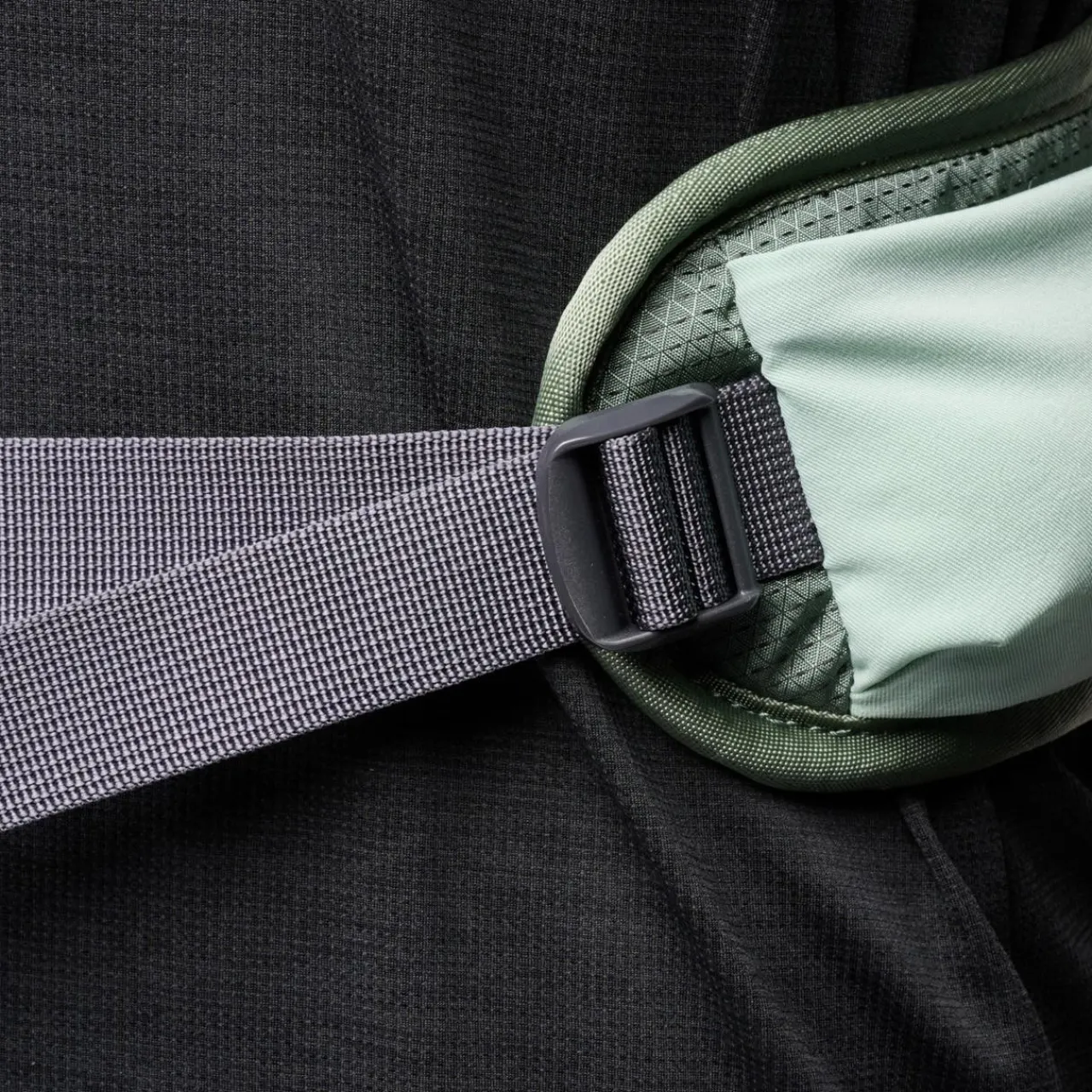 The ventilated EVA back panel and the soft hipbelt make a noticeable difference to overall comfort, even when carrying a heavier load for a full day out. Storage is neatly organised, with two hipbelt pockets, a shoulder strap pocket for small items, and stretchy side and front pockets that can hold a good amount of extra gear. I appreciated the quick-access pole attachments and the included rain cover, although the front stash pocket does feel a little tight if you’re packing bulkier layers.