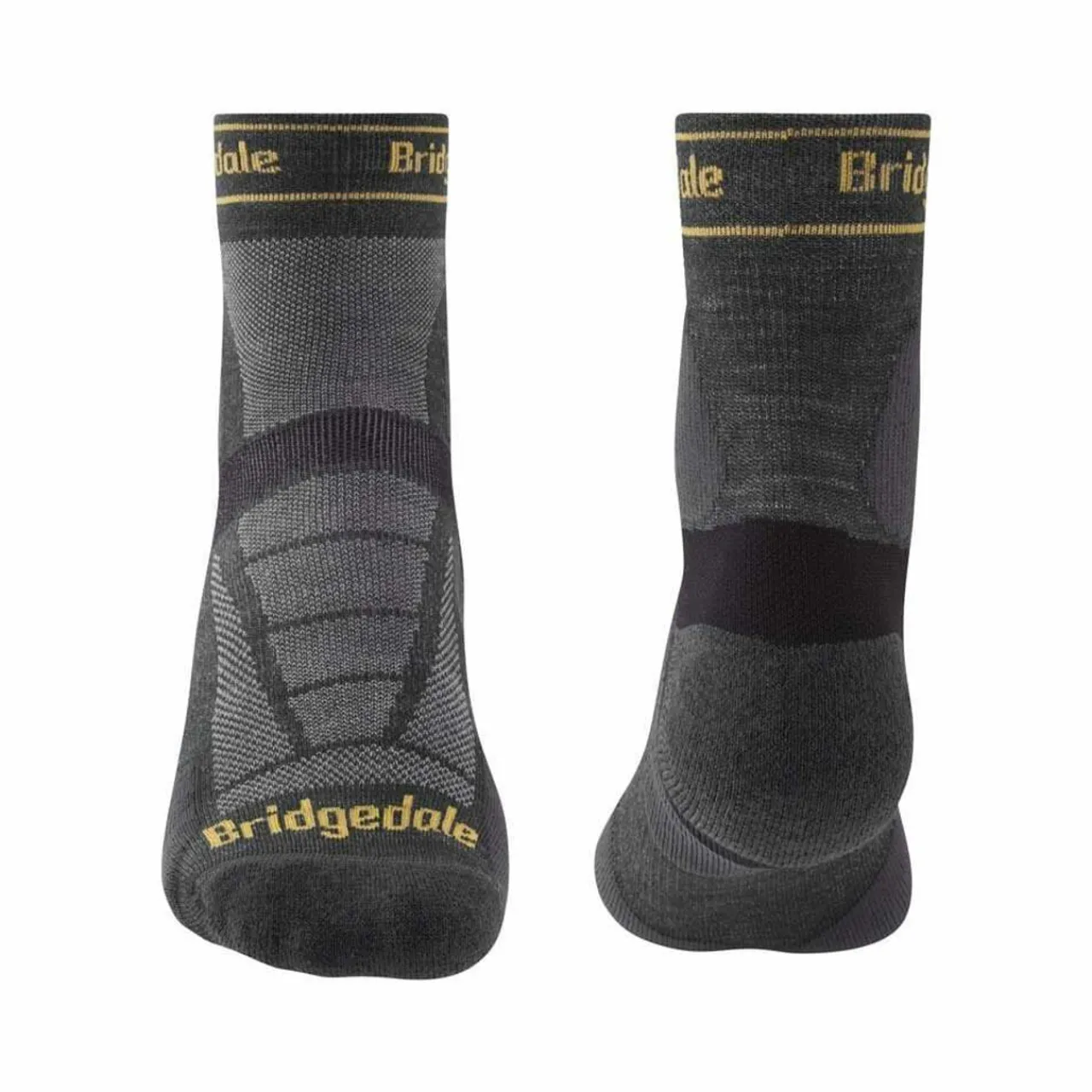 Bridgedale’s Trail Run Ultra Light T2 Merino Sport 3/4 Crew Socks combine comfort, style, cushioning and breathability really well. This version uses a merino blend to provides extra warmth and padding with the bulkier fabric so they are best suited to cooler conditions or for people want a little more padding and warmth. The 3/4 length is great for adding coverage and protection from debris.