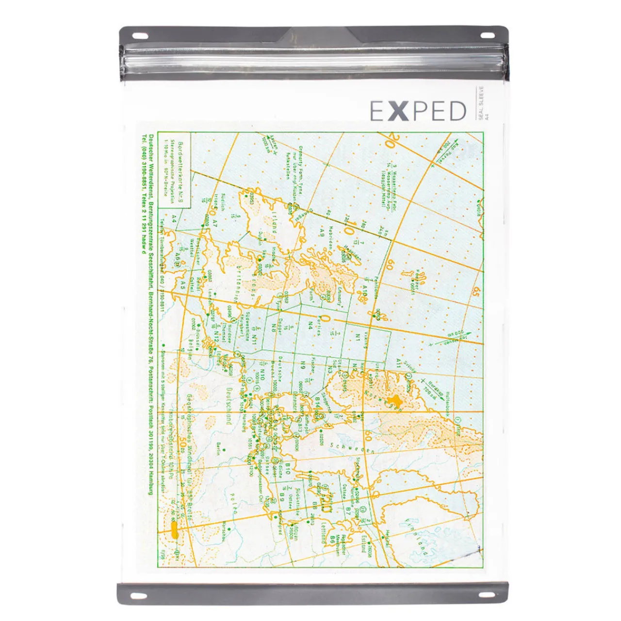 The Exped Seal Sleeve A4 protects electronics and documents from rain with its waterproof seal.