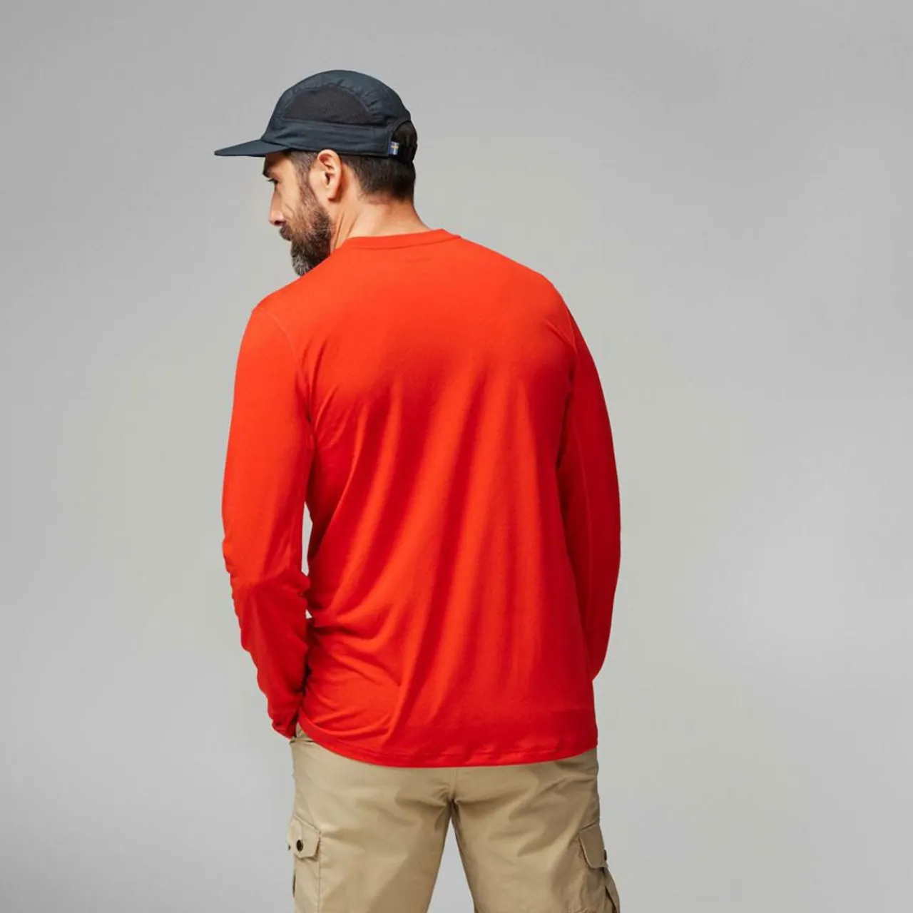 The Fjallraven Abisko Day Hike LS is a versatile, lightweight, long-sleeved top designed for men who enjoy outdoor activities and travel in warm, sunny climates. Constructed from a technical jersey knit of recycled polyester, this top efficiently wicks away moisture. It dries quickly, ensuring maximum comfort and sun protection during long days on the trail. With panels under the arms for enhanced freedom of movement and shoulder seams positioned towards the back to reduce the risk of chafing when carrying a backpack, this top is engineered for optimal performance and comfort. Additionally, the breathable fit allows air to circulate around the body, keeping you cool and comfortable throughout your adventures.
