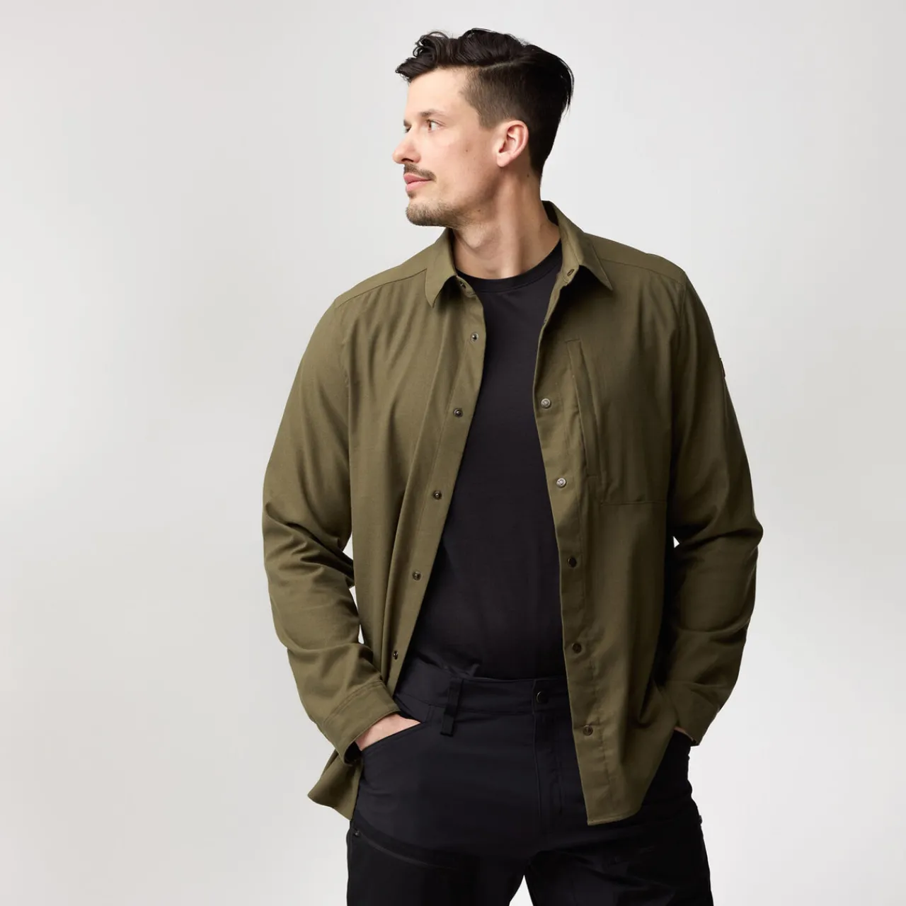 Incredibly comfortable long-sleeved trekking shirt in durable partly recycled polyester with mechanical stretch giving it good freedom of movement. The fabric is also soft, quick drying and wicks away moisture, keeping you warm and happy on the trail. Reinforcements with G-1000 Air Stretch on the elbows, lower sleeves, shoulders and back yoke give this shirt incredible durability ensuring that it will be with you on trekking adventures for many years to come.