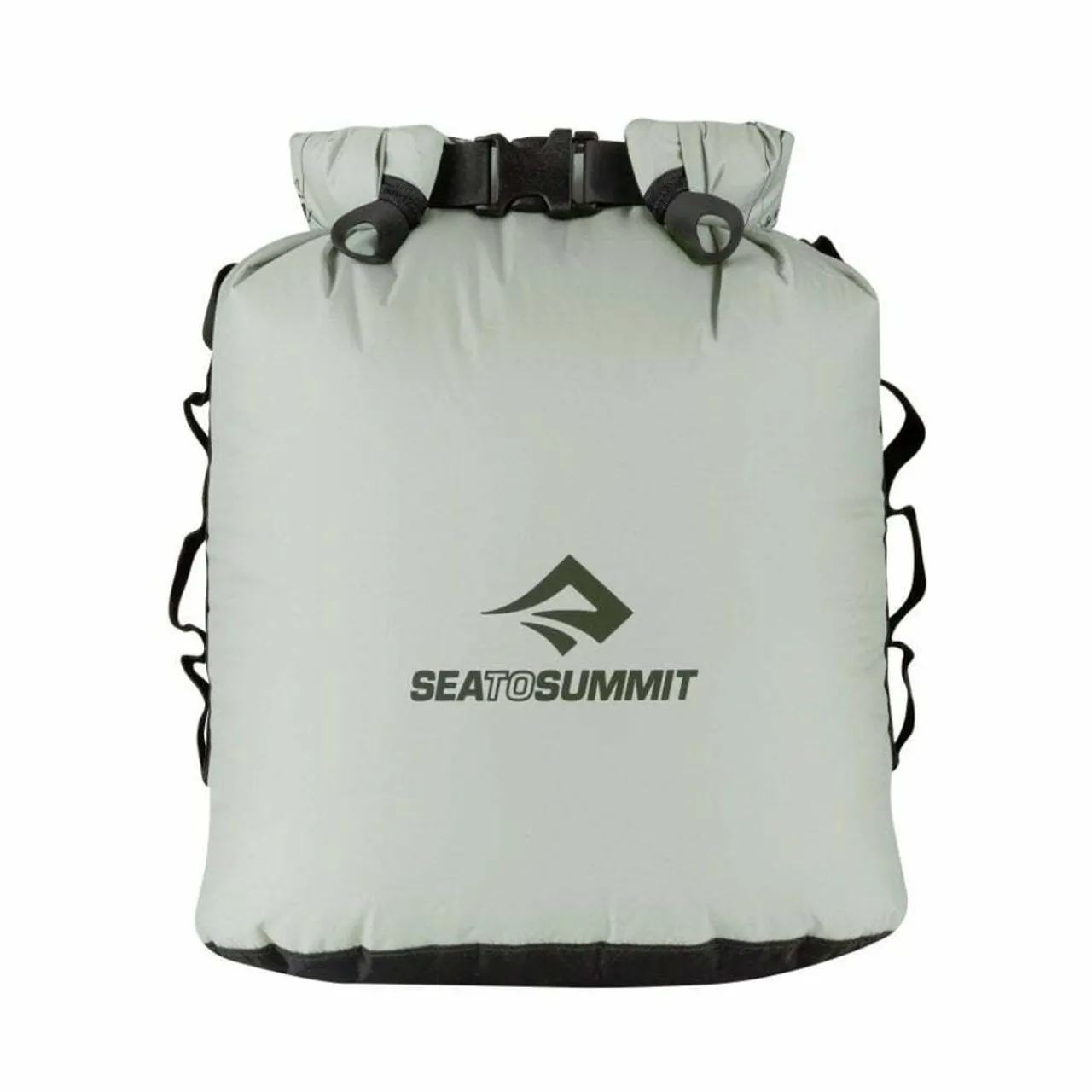 Designed with a unique roll top closure that accepts a disposable garbage bag liner, the Trash Dry Sack is great as a soft garbage container in the field, in a boat or in your car. Roll the top down to prevent any leakage while transporting. Hypalon clip-in loops allow it to be hung from a tree or tied to the outside of a pack.