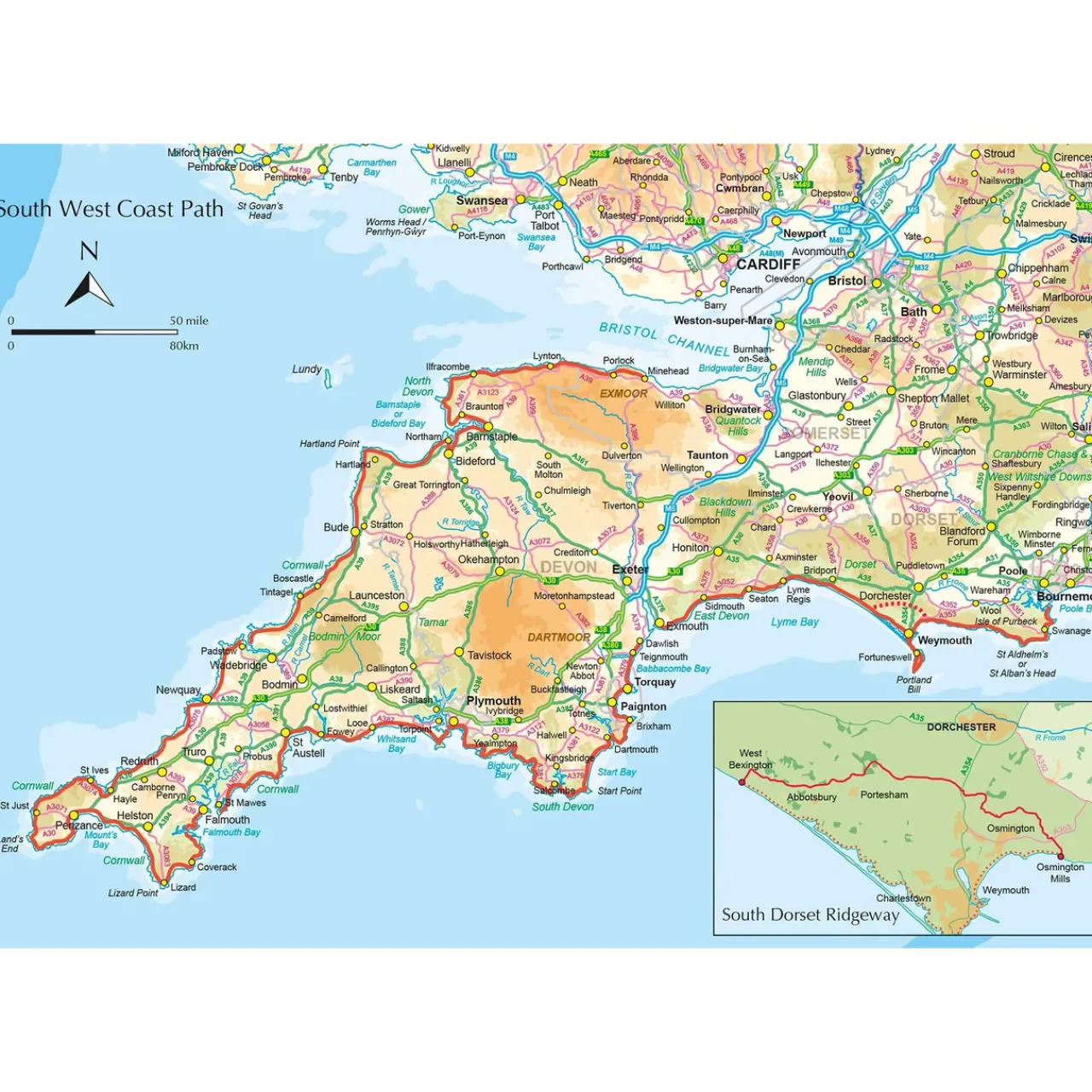 - Centres: Minehead, Ilfracombe, Bideford, Bude, Padstow, Newquay, St Ives, Penzance, Falmouth, St Austell, Plymouth, Torquay, Exmouth, Lyme Regis, Weymouth, Swanage, Poole