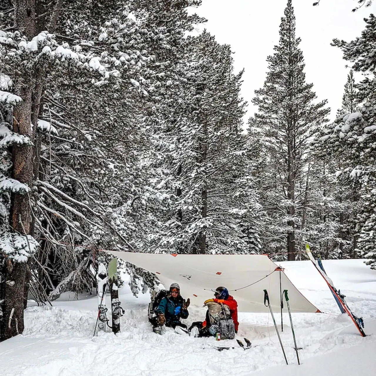 The flat tarp is the quintessential multi-purpose shelter, prized for its versatility, simplicity, and roominess. A flat tarp can be adapted to just about any set of conditions by changing the pitch, and is equally at home as an emergency shelter on a day-long ski tour or as a group hangout for cooking on a rainy backpacking trip.