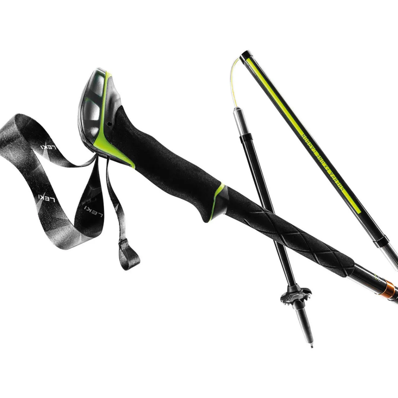 The LEKI Sherpa FX. One Carbon Mountaineering Poles are reliable for challenging terrain. They combine lightweight construction and ergonomic design for comfort and control. The robust aluminum base and folding design make them packable and versatile for trekking and hiking.