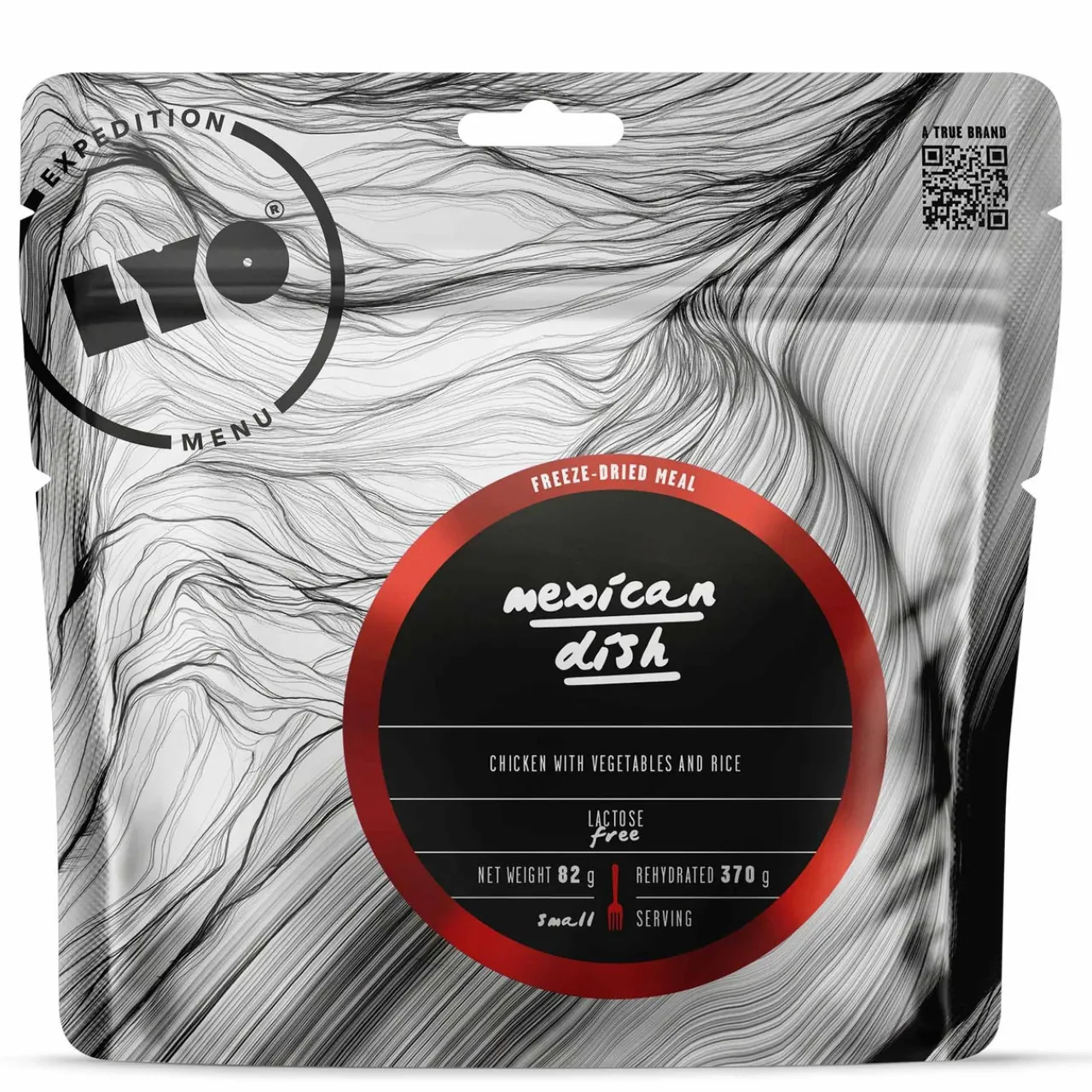 | STAFF’S TASTE TEST – Small pack, Only 319kcals. I was intrigued to see what the Mexican dish was, the main ingredients are chicken breast fillets and rice. It did have some red kidney beans in it. The reconstitution was excellent but it was pretty tasteless to me. Big lumps of chicken reconstituted well. However the whole meal lacked taste, if you feel like freeze dried meals are all very spicy then this one might be a good choice, for me though 7/10. |