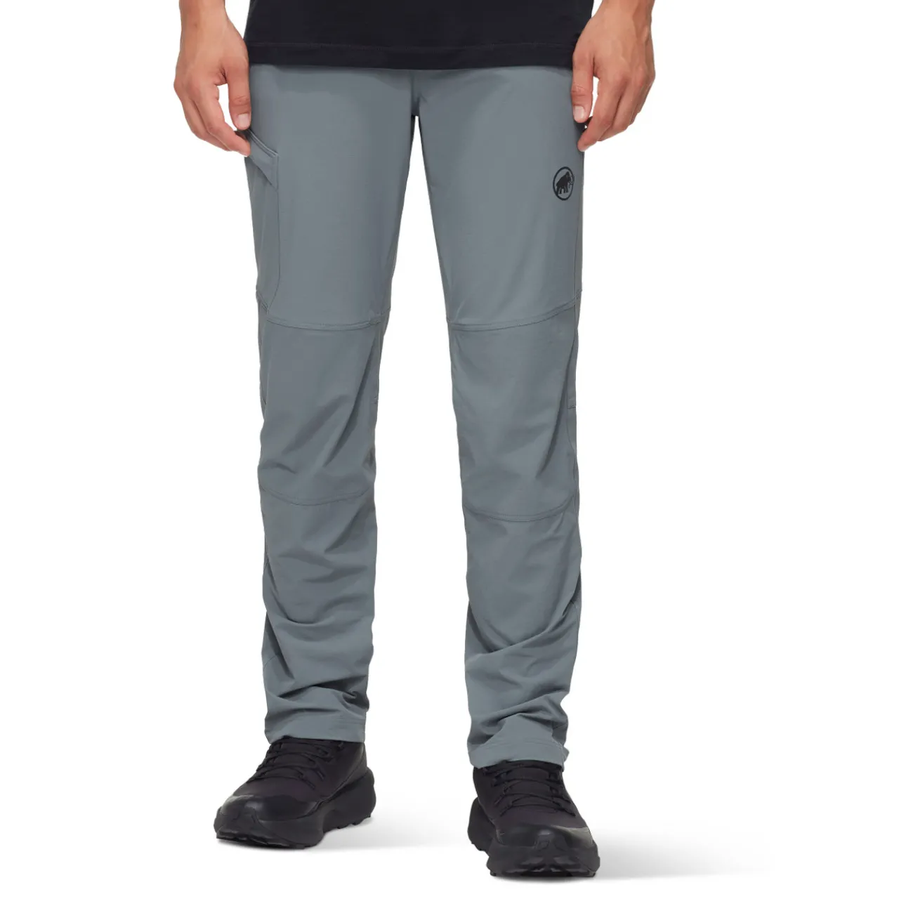The Mammut Runbold IV Pants offer excellent freedom of movement thanks to their four-way stretch and slim, active fit. At 209g in medium, they’re well-suited to warm-weather hikes where comfort and breathability are key. The hook-and-loop waist adjustment is a real highlight—it lets you fine-tune the fit without needing a belt, which is especially useful on longer trips where your waistline may fluctuate, though it can chafe a baselayer. The fabric dries quickly, wicks moisture well, and has enough structure to avoid that flimsy feel. Storage is generous and practical, with two side pockets, a thigh pocket, and one at the rear, all secured with low-profile zips.