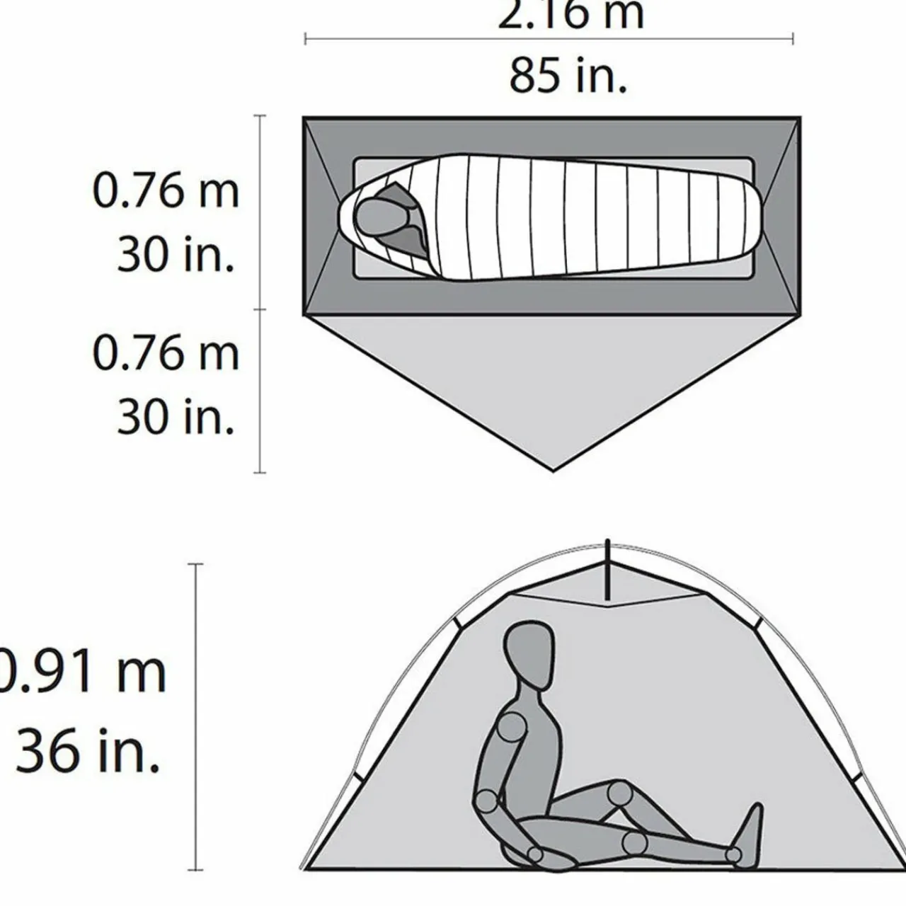 - Interior peak height: 36 in / 91cm
