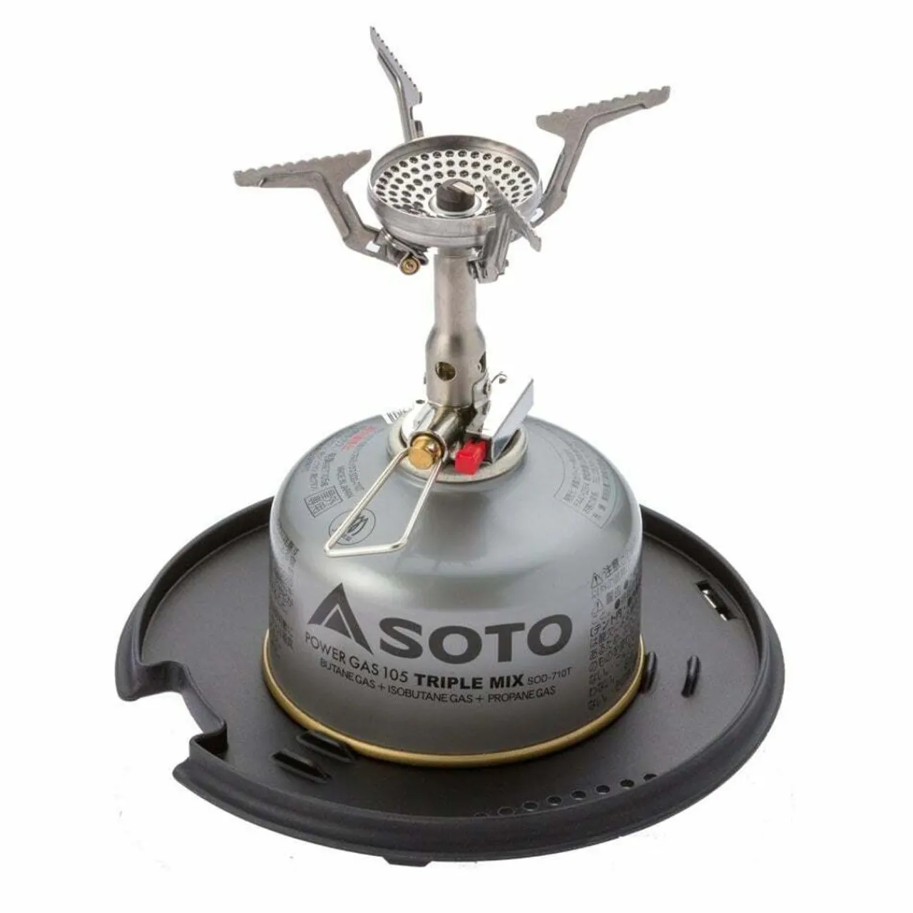 SOTO’s new ultra-hard anodized aluminum cook set excels in shock resistance, wearability and corrosiveness compared to conventional sulfuric anodized pot. The wide rim narrow pot provides enough room for cooking large amounts of food and makes clean up easy. The wide base minimises heat loss thereby reducing gas consumption. Stack and stow all in one.