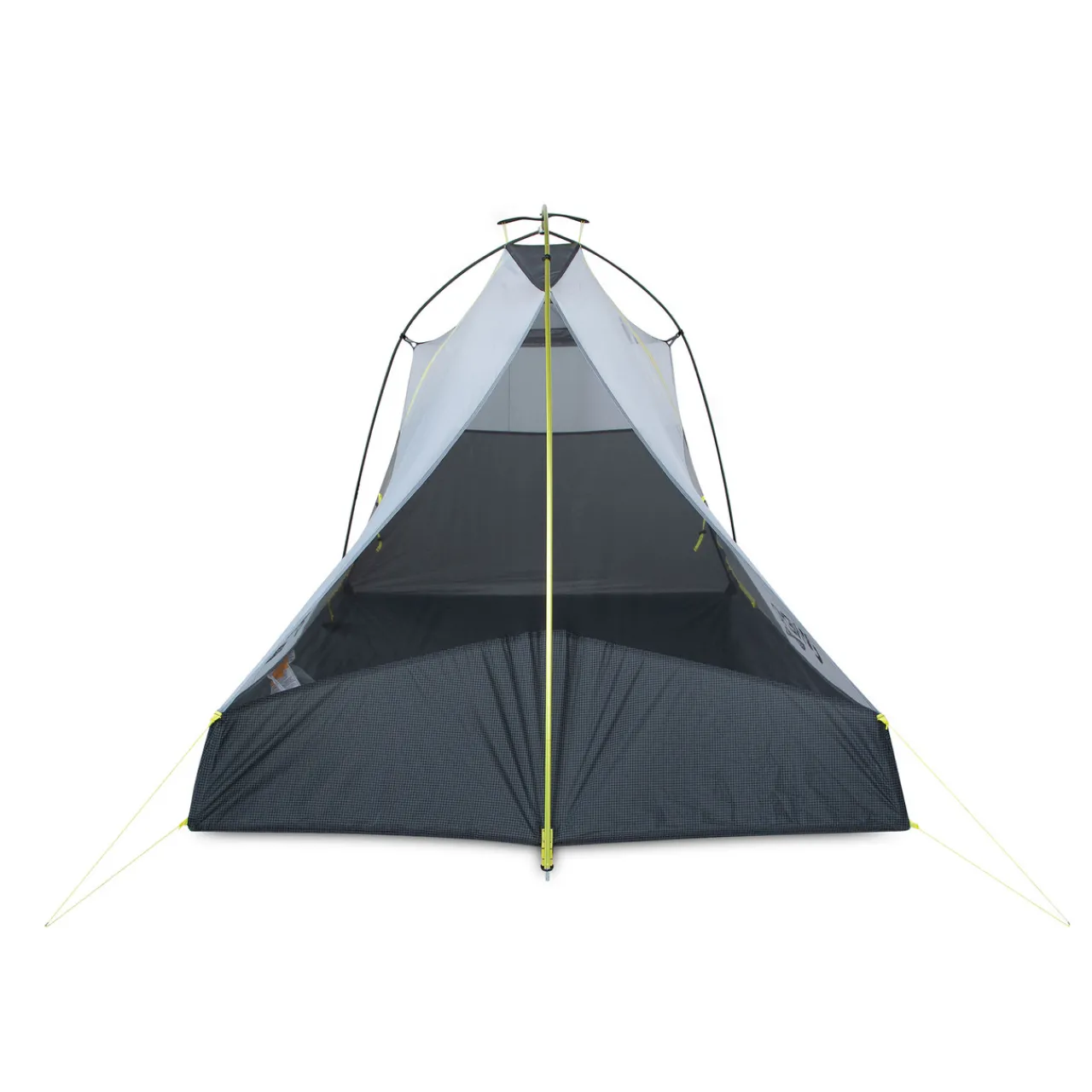 - Triangulated volumizing guy-outs and struts at corners increase volume at the foot, protecting sleeping bags from tent wall condensation.