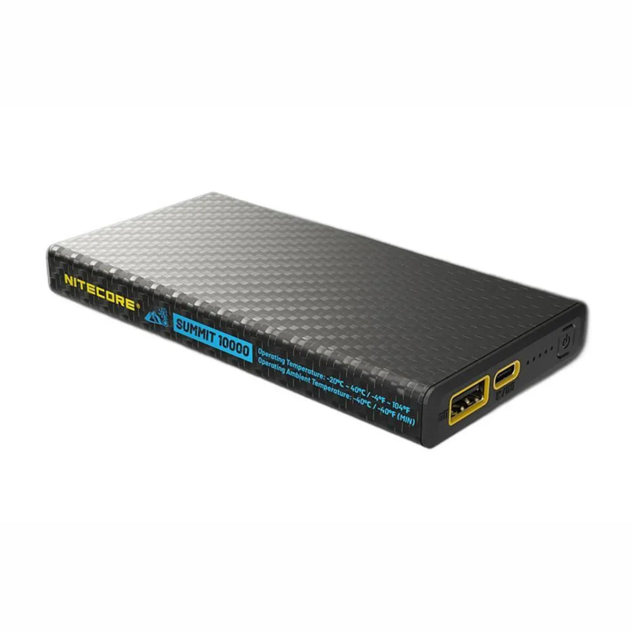The Nitecore Summit 10000 is a low temperature resistant carbon fibre power bank, offering continuous use in temperatures as low as -40ºC. It has a large capacity of 10,000mAh which provides sufficient power for smartphones, headlamps, earphones and other electronic devices.