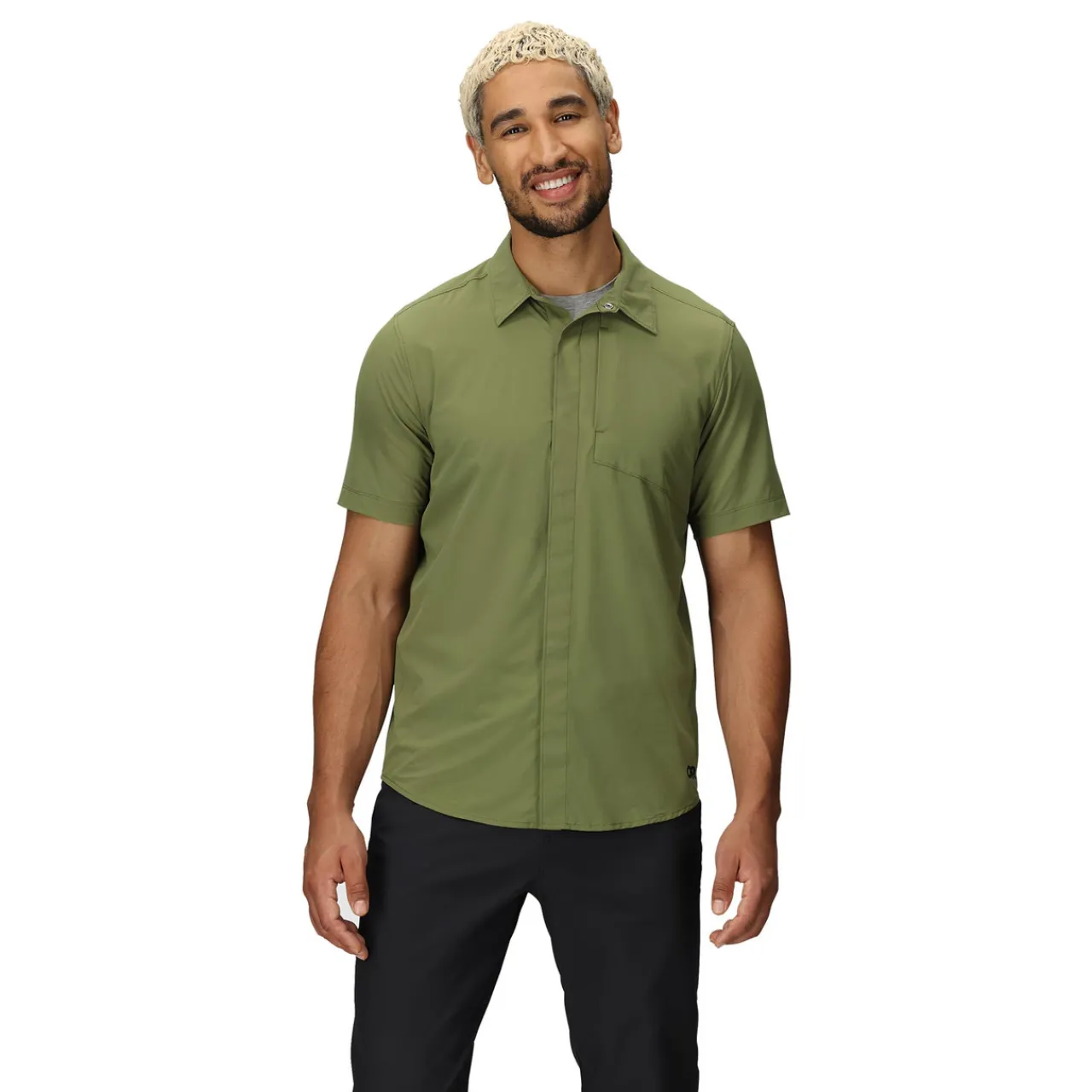 The Outdoor Research Astroman Air Short Sleeve Shirt excels in outdoor adventures. Its breathable recycled nylon/spandex blend keeps you cool and comfortable during various activities.