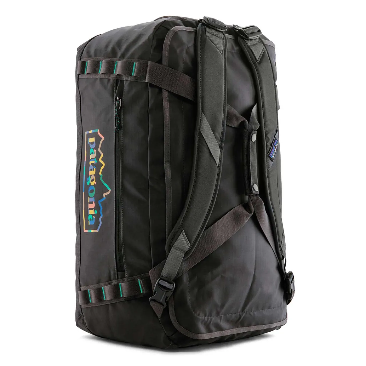 The Patagonia Black Hole Duffel 55L is a durable, eco-friendly bag. It has a large capacity and is made from recycled materials. It is weather-resistant and has well-designed features, such as removable backpack straps and zippered side access.