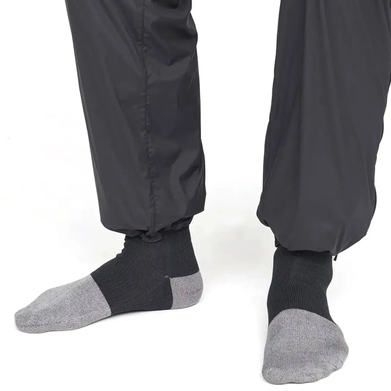 Montbell’s Dynamo Wind Pants are a great piece of kit for having in your pack to protect you from the wind. At such a low weight there are just a few features but these include an elasticated waistband with a drawstring, a small inner key pocket, ankle zippers and a stuff sack. These pants do a great job of cutting out the wind and provide some protection against light rain. There is no warmth in terms of insulation but that’s not what they are for.Â