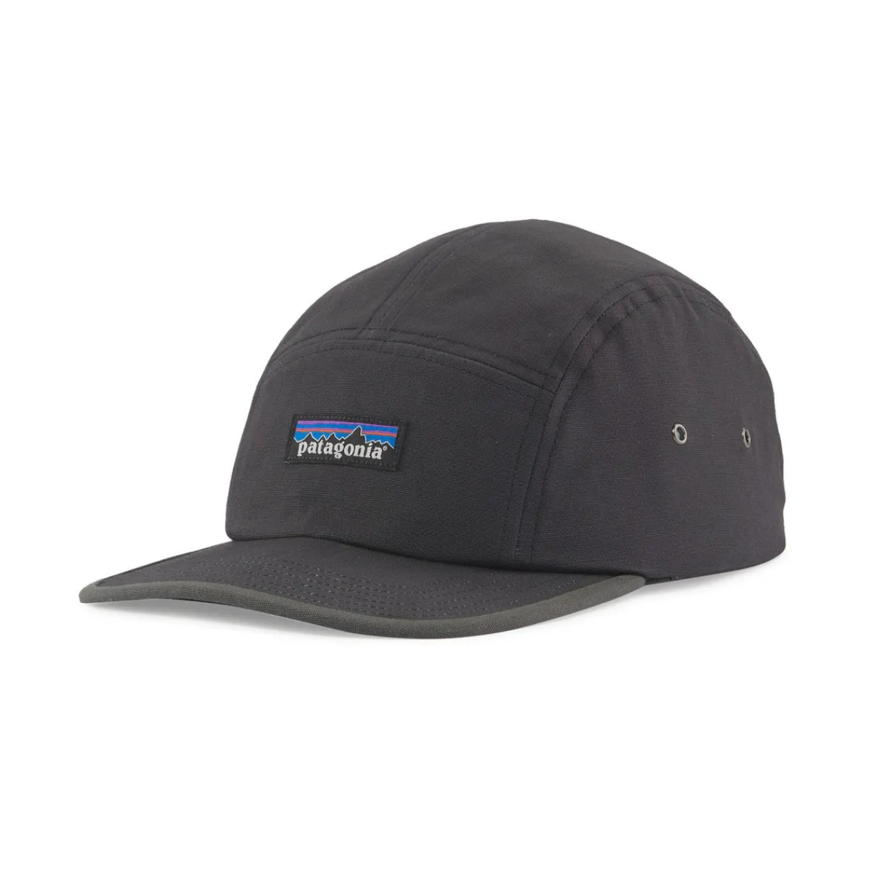 A stylish retro five-pannel cap with a cool vintage Patagonia logo embossed on it.