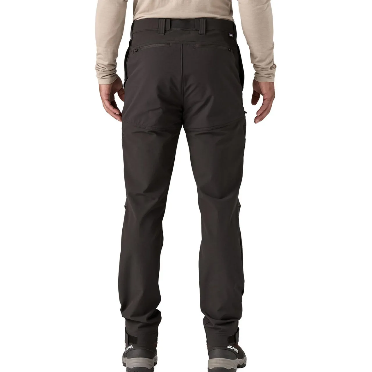 The Patagonia Terravia Peak Pants feel reassuringly solid, especially through the seat and knees, where the reinforcement is noticeable but doesn’t restrict movement. At 572g (Medium), they’re heavier than many softshell options, but the trade-off is clear: proper protection when scrambling, kneeling or brushing through heather. The articulation is well judged, with a gusseted crotch and shaped legs that allow natural movement even with a harness or full pack.