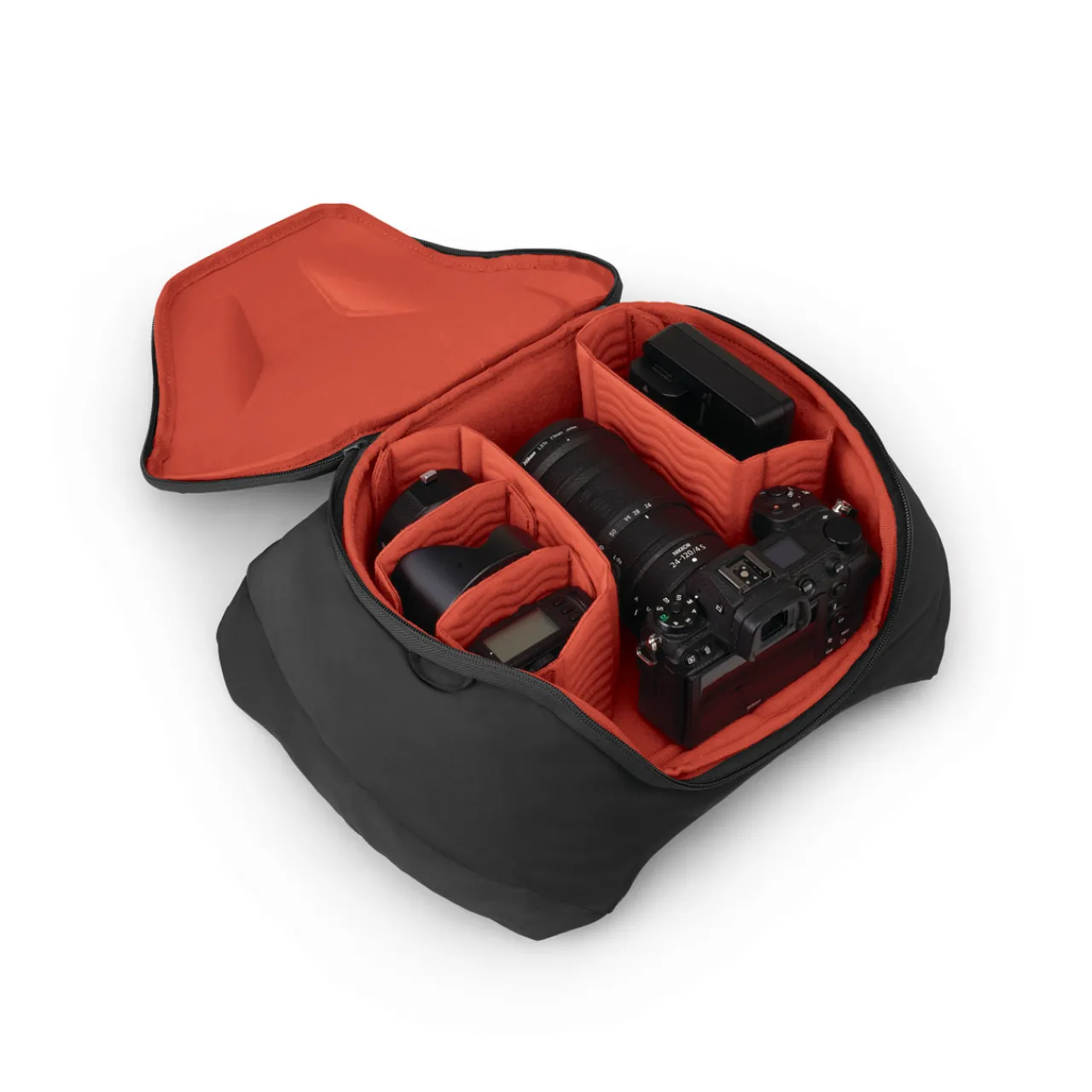 The Osprey PhotoLid is a clever solution for carrying camera gear on multi-day hikes without adding an extra pack. It neatly attaches to any Ospray pack with a removable lid. Once connected, access is quick and intuitive.