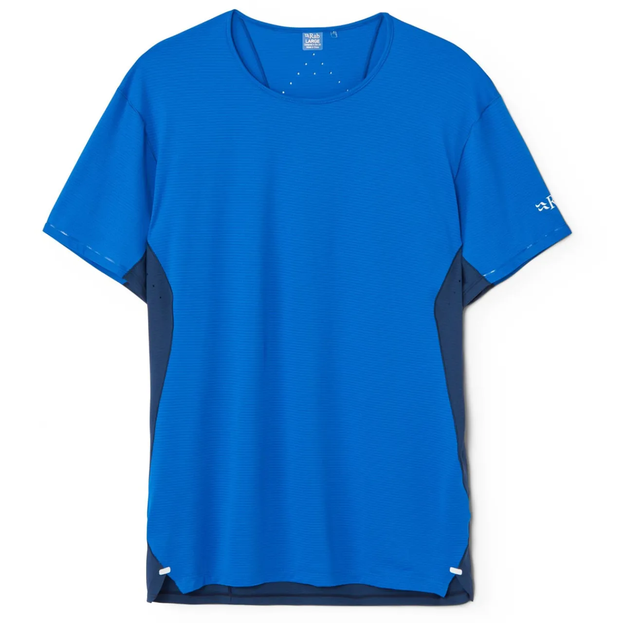 Built with fast-moving , hard working mountain runners and hikers in mind, this base layer is made from Rabs Motiv aero fabric, which is highly breathable but amazing at wicking sweat away from the body, it is able to accomplish this through the use of “bulk yarn” which has a much greater surface area than a traditional yarn, bulk yarn limits absorbency while improving ventilation. Laser-cut perforations under the armpits and around the neck improve air flow.