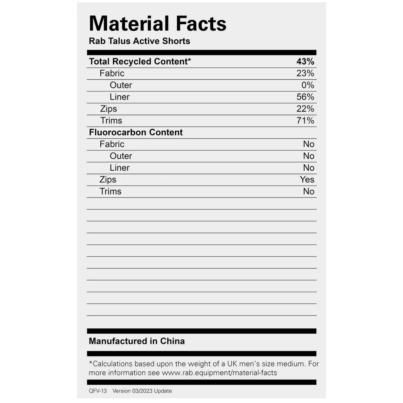 UOG TOP PICK -Talus Active Shorts The Talus Active Shorts are built with a lightweight, quick drying Matrix fabric and a breathable Motive Aero liner. With an elasticated waistband, handy back pocket, and complete mobility, they’re perfect for the aspiring mountain runner, one of our top picks!