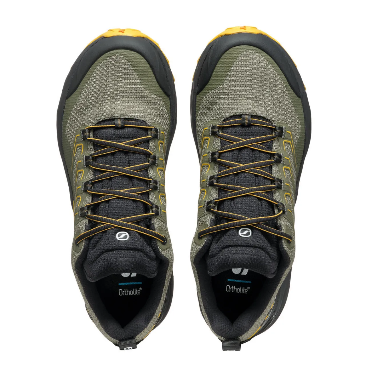 A new dynamic and comfortable shoe to explore the trails, characterised by a strong SCARPA identity and designed for those who approach the mountains at a faster pace and require support and greater protection. Comfort and cushioning are ensured by the IKS technology, capable of progressively and specifically supporting the weight of the body during activity. The new anti-torsion system improves stability and heel containment, while the Gore-Tex membrane guarantees waterproof protection.