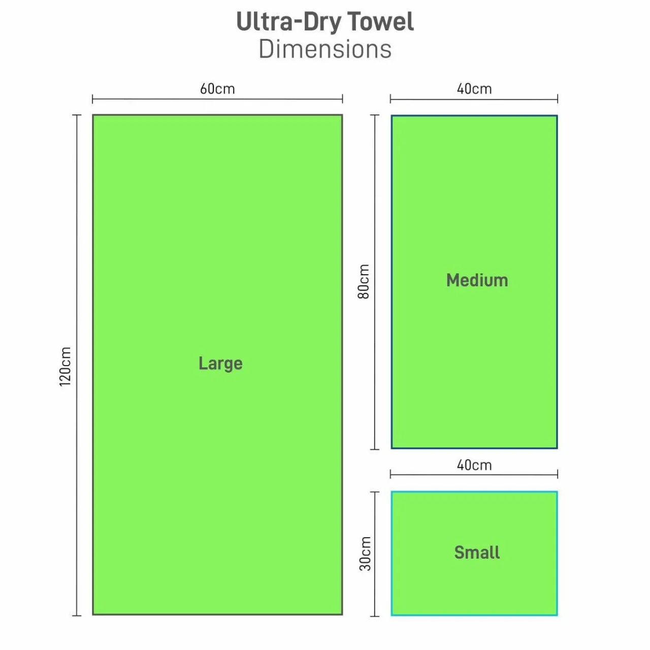 The Ultra-Dry Towel is designed to provide travellers with a lightweight, packable piece of kit. The microfibre construction make this towel highly absorbent and fast drying whilst minimising the weight and pack size.Â