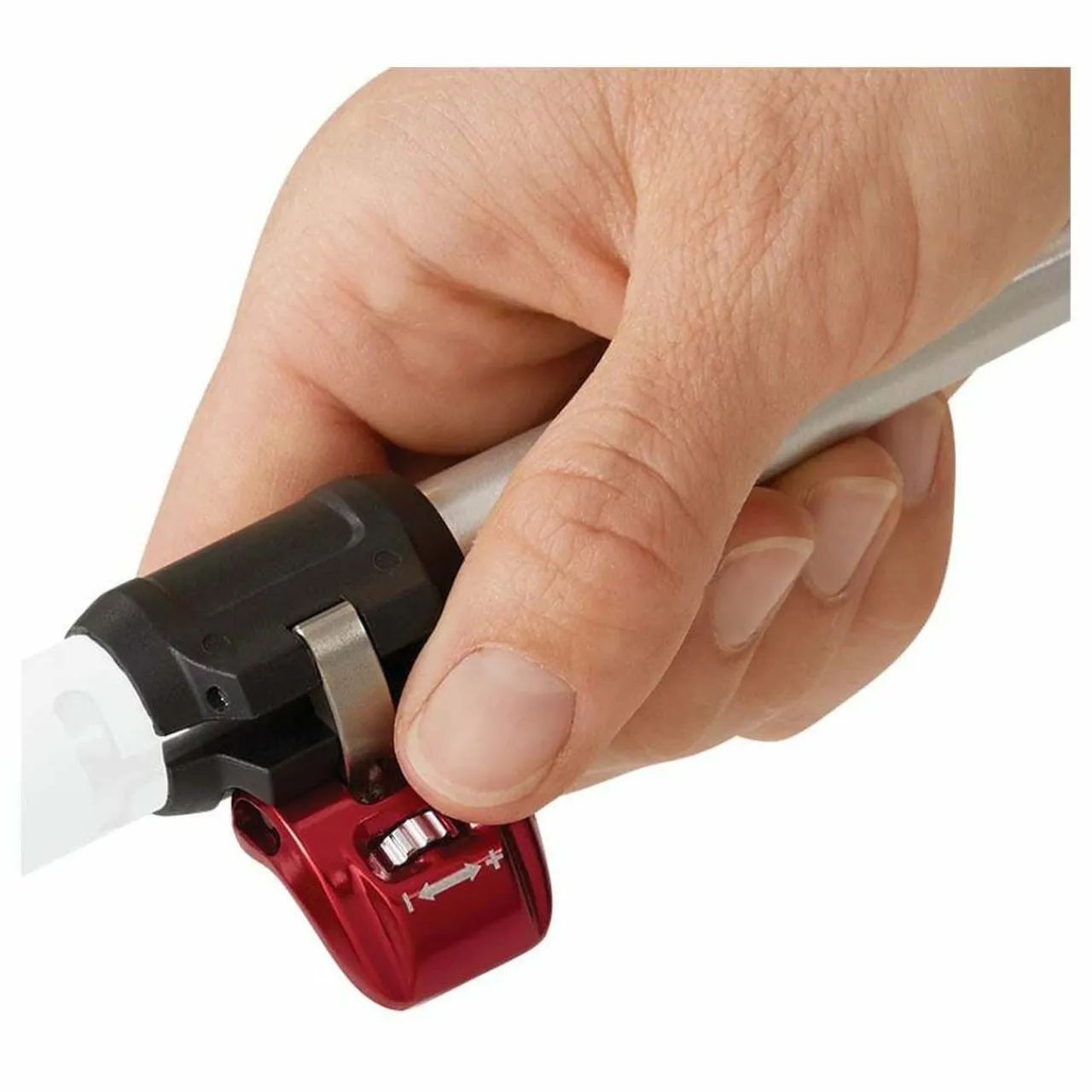 The fusion construction of Carbon Fibre and Kevlar keeps the weight down but the strength and durability high. The collapsible shaft assembles with a quick pull so you can whip it out of your pack and be ready to go in few clicks. The Pole has an wide 20cm range of adjustability which is super secure with its patented Dyna lock technology. A novel feature is the ability to adjust the clamping force when on the go.