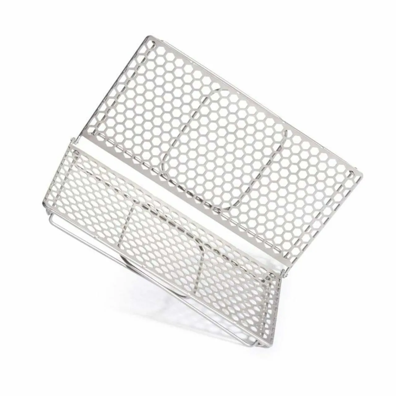 Grill up delicious food in the backcountry effortlessly with the BiFold Grill. Its fold-flat design and all titanium construction makes packing and carrying it easy and lightweight. Simply unfold the stove and legs to place over any fire. With a 60+ square inch cooking surface, the BiFold Grill can handle fish fillets, vegetables, and steaks or simply place your pot or pan on top for over-the-fire cooking. The included nylon protective case keeps it and the rest of your gear clean while not in use.