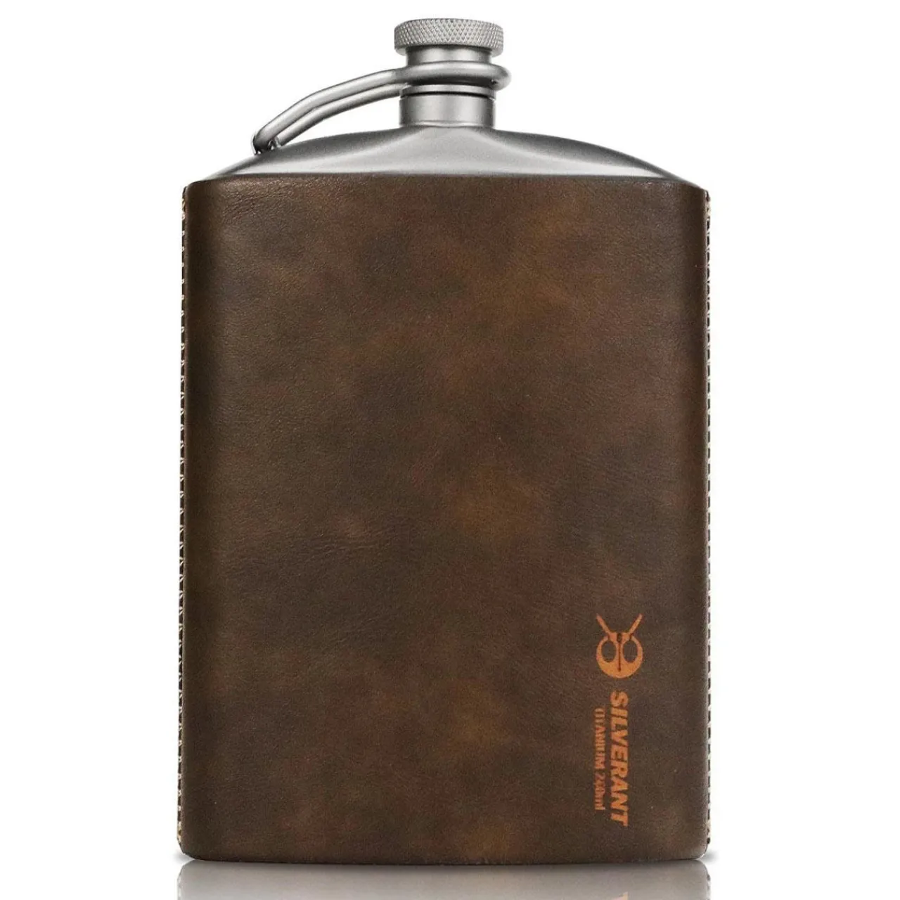The Titanium Hip Flask by Silverant is a durable, lightweight, and leak-proof flask with a 248ml capacity and a handy funnel to prevent spillage.