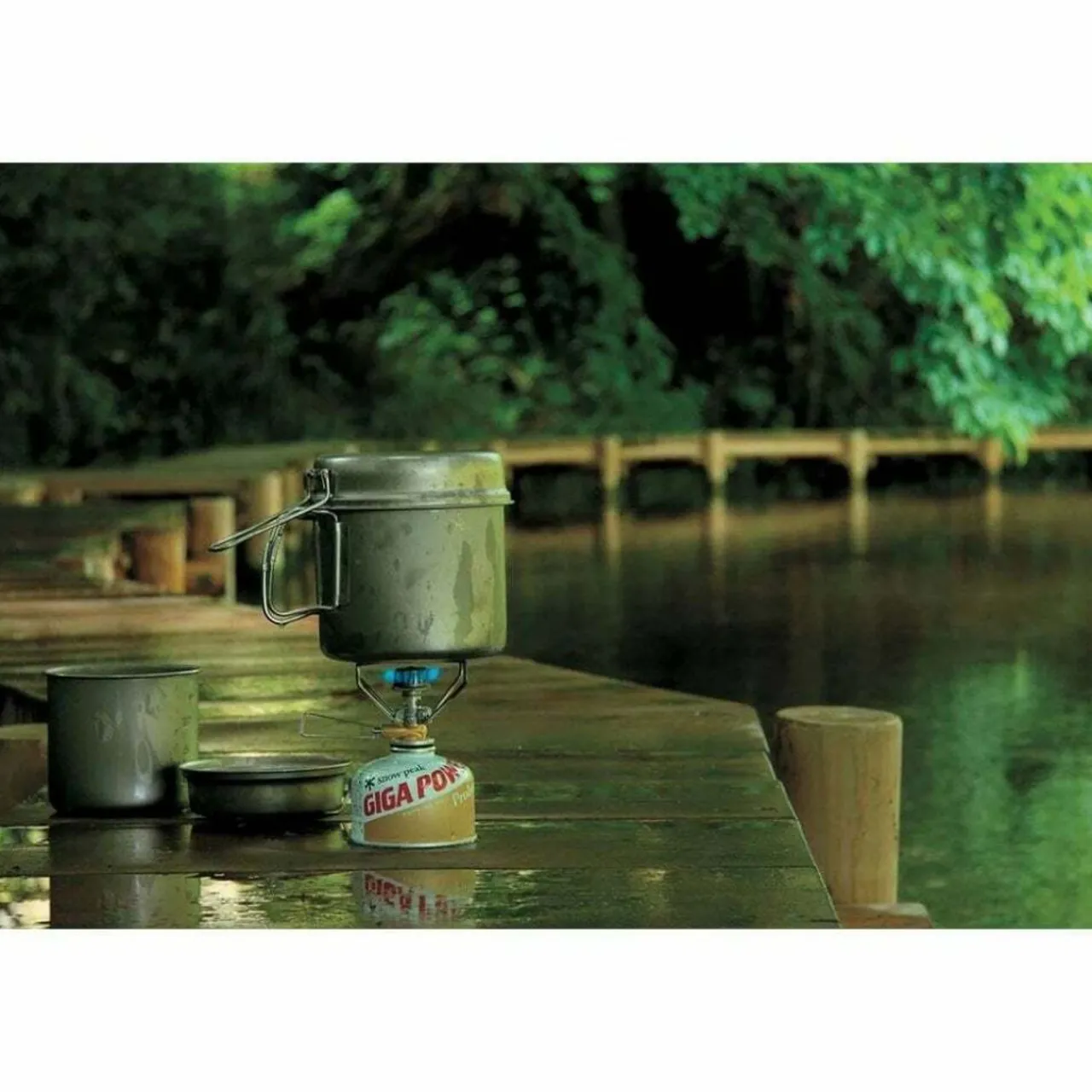 Snow Peak’s Titanium Trek 1400 provides a large 1.4L capacity pot with a lid that doubles as a small fry pan. Simple but effective folding handles keep the design compact while the minimalist style keep the weight down too. This set is ideally suited to a couple of campers aiming to share cookware or an individual in need of a large pot. The fry pan works well for small items such as eggs but is most often just used as a lid.