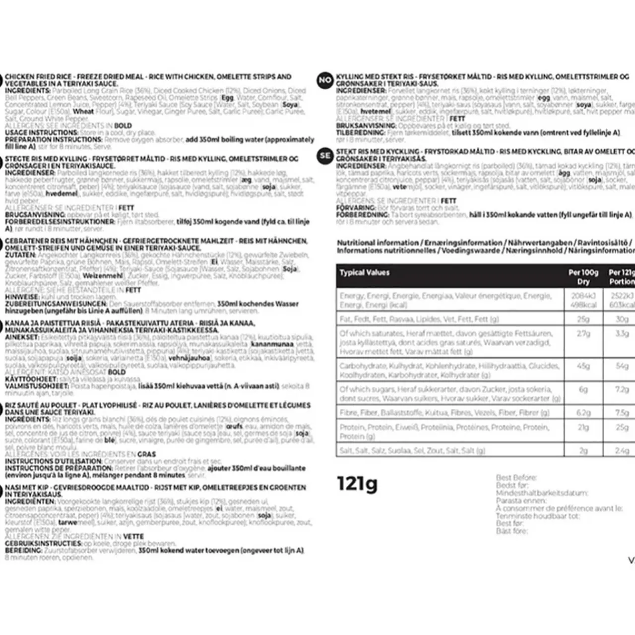 Preparing this meal is faster than a takeaway too. Expertly cooked using the freshest ingredients then freeze-dried, all you need to do is simply add water and you can be enjoying a tasty meal in less than 10 minutes. Because we cook our meals first before freeze-drying, every meal tastes great and provides a well-balanced meal on any adventure. Not only is preparation quick, each pouch is packed full of all the valuable carbohydrates and protein you need to rest and recharge before you carry on your adventure.