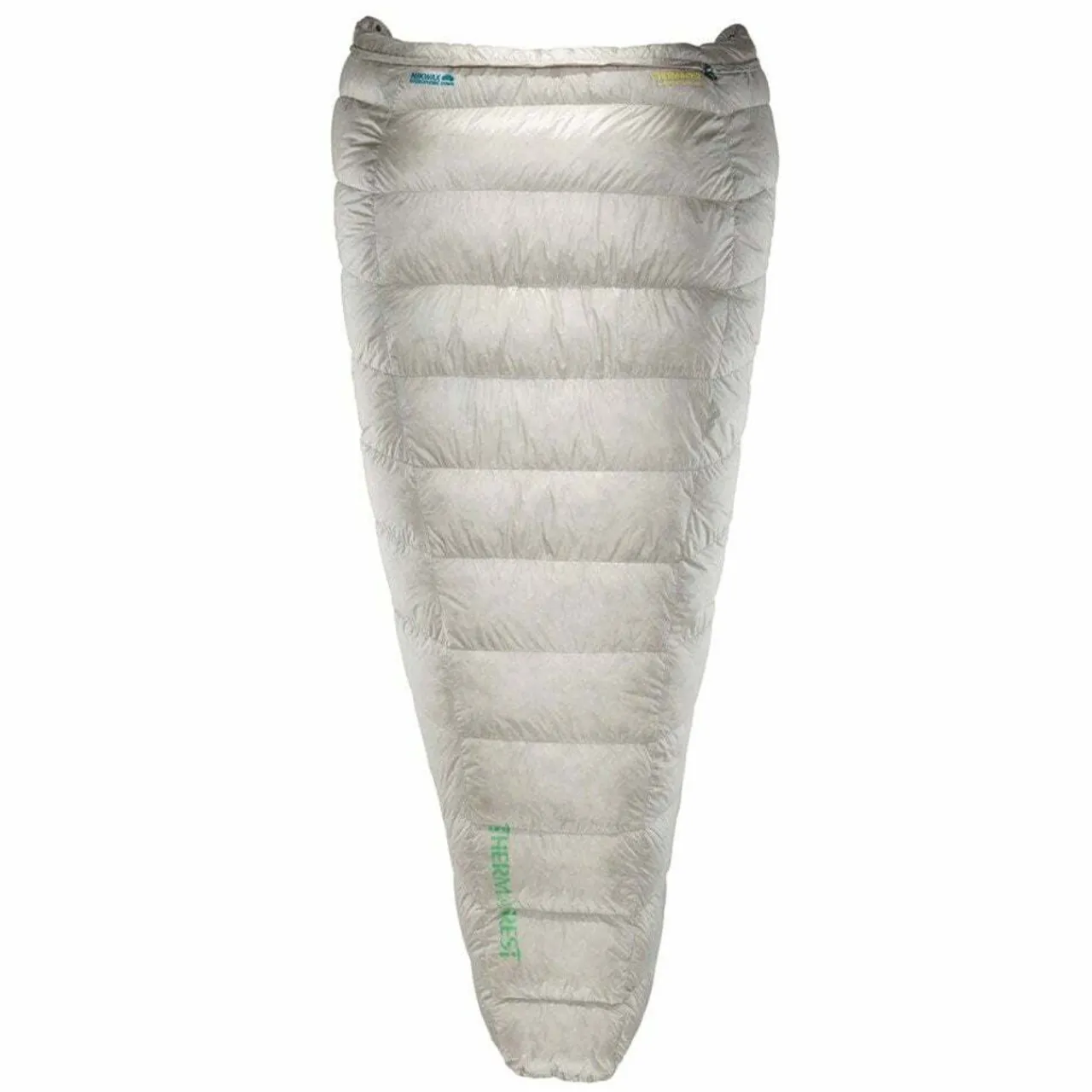 Featuring unrivaled packability and featherweight design, the Vesper 20F/-6C quilt provides no-frills camp comfort. The quilt uses thermally-efficient box baffled construction to maximize warmth and comfort for a high-performance, ultralight piece. The Vesper was designed with high-quality materials and Therm-a-Rest performance features like a SynergyLinkâ„¢ Connector, a snap neck closure, perimeter side baffles and an insulated footbox to provide warmth and comfort in the backcountry. When compared to sleeping bags, the Vesper quilts save weight and pack smaller by utilizing the warmth of your insulated mattress. Storage sack and compression stuff sack included.
