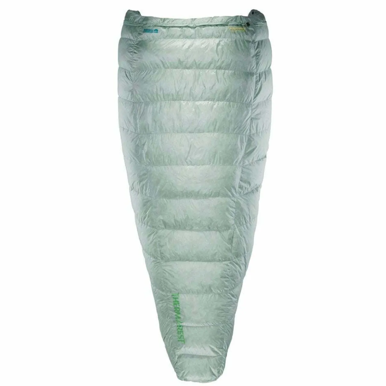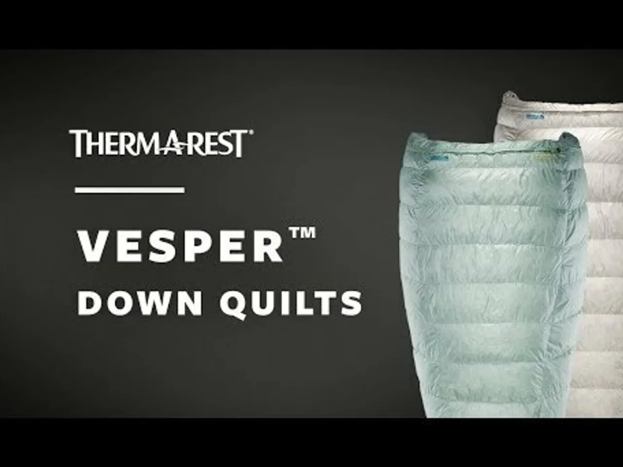Built to provide a featherlight pack weight and high-performance warmth, the Vesper 32F/0C quilt thrives during ultralight, backcountry adventures. The quilt uses thermally-efficient box baffled construction to ensure warmth and comfort in an ultralight package. Designed with high-quality materials and Therm-a-Rest performance features like a SynergyLinkâ„¢ Connector, a snap neck closure, perimeter side baffles and an insulated footbox provide warmth and comfort in the backcountry. When compared to sleeping bags, the Vesper quilts save weight and pack smaller by utilizing the warmth of your insulated mattress. Storage sack and compression stuff sack included.