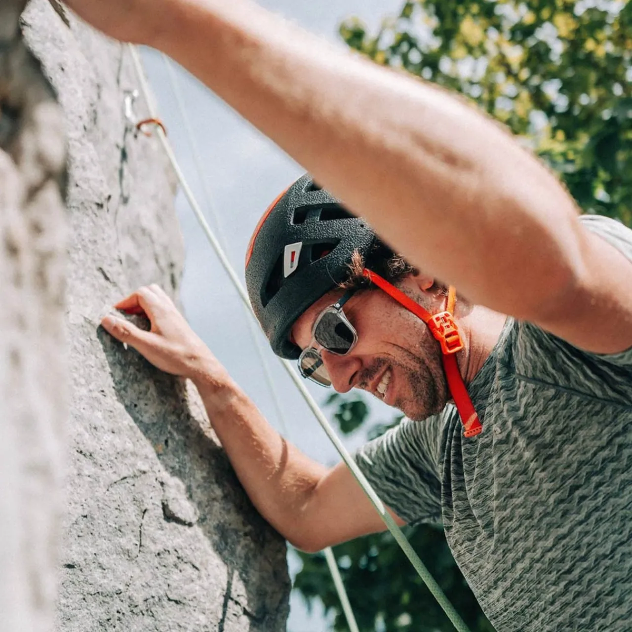 The Times Roam Polarised Sunglasses take the brand’s signature strap-based design and pair it with a classic rectangular frame, slightly broader than the original Seek. The armless construction uses a soft, flexible cord that wraps around the head and doubles as a neck strap, keeping the 22g frames stable without ear pressure or bounce. The lenses, made by Zeiss, deliver crisp optics, full UV protection, and effective polarisation that holds up in bright, exposed terrain. The Roam blends timeless shape with forward-thinking design.