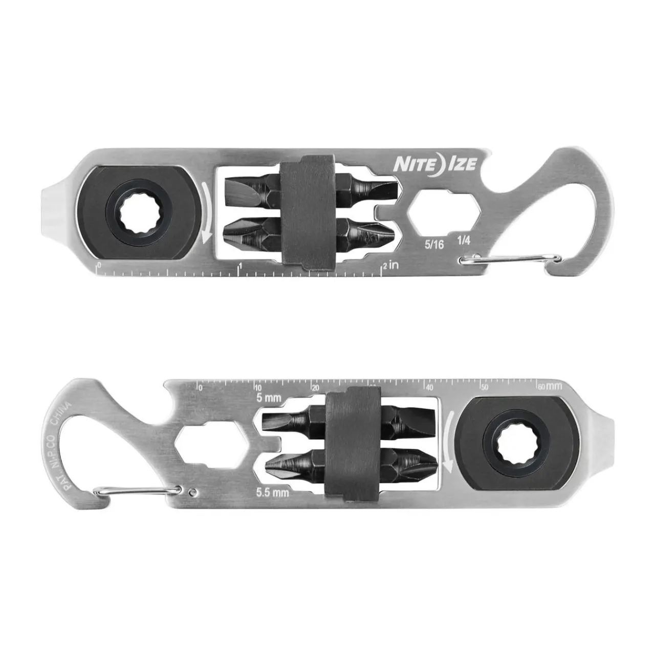 - Includes: ratchet, flat bit 3.5 + 5.5mm, Phillips bit #1 + #2, bottle opener, standard/metric ruler, wrenches, pry tool, scoring point