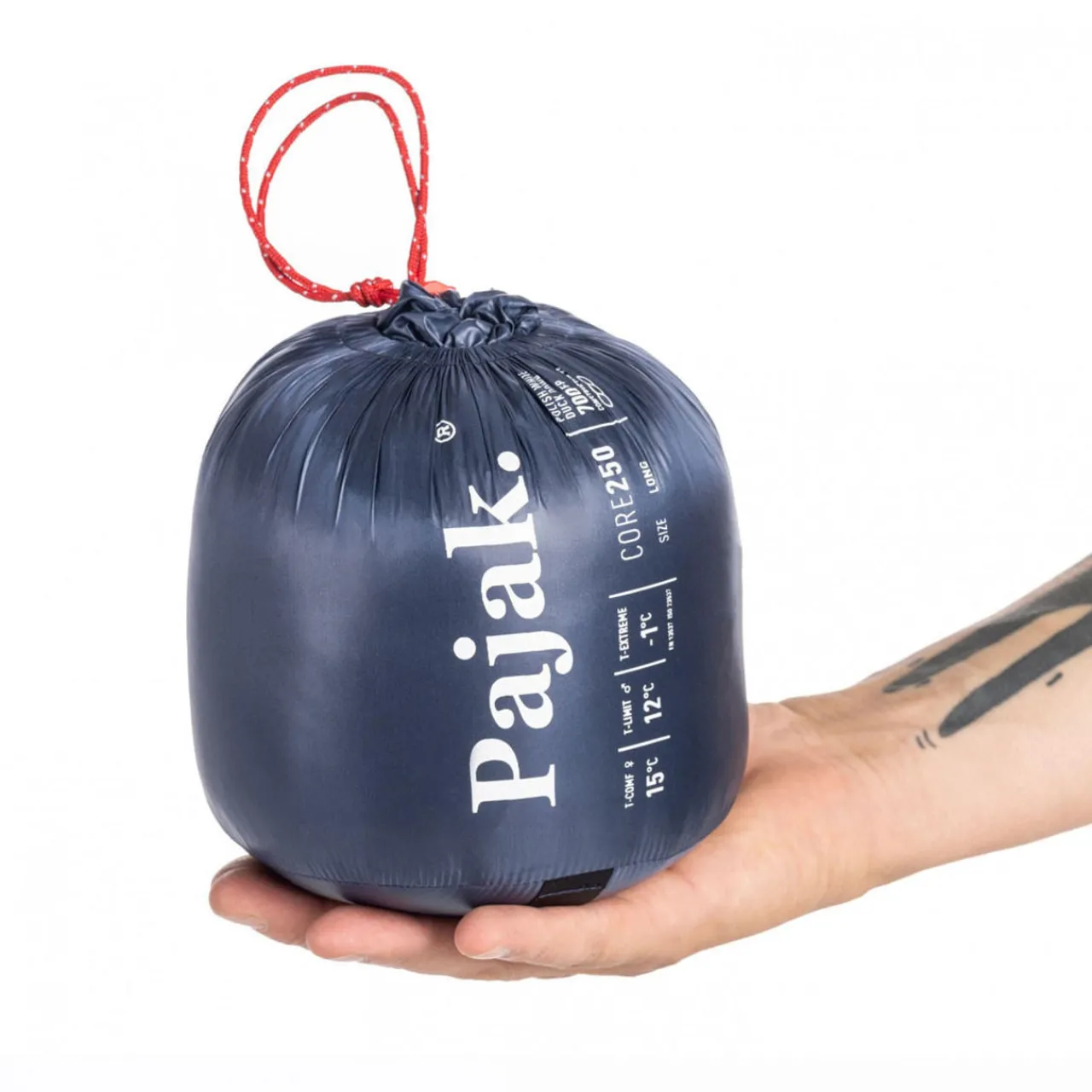 - It also has a number of features that make it easy to use, including a full-length zipper, and a hood to keep your head warm. Overall, Pajak Core 250 is a great choice for anyone looking for a lightweight and compressible sleeping bag that is perfect for summer use.