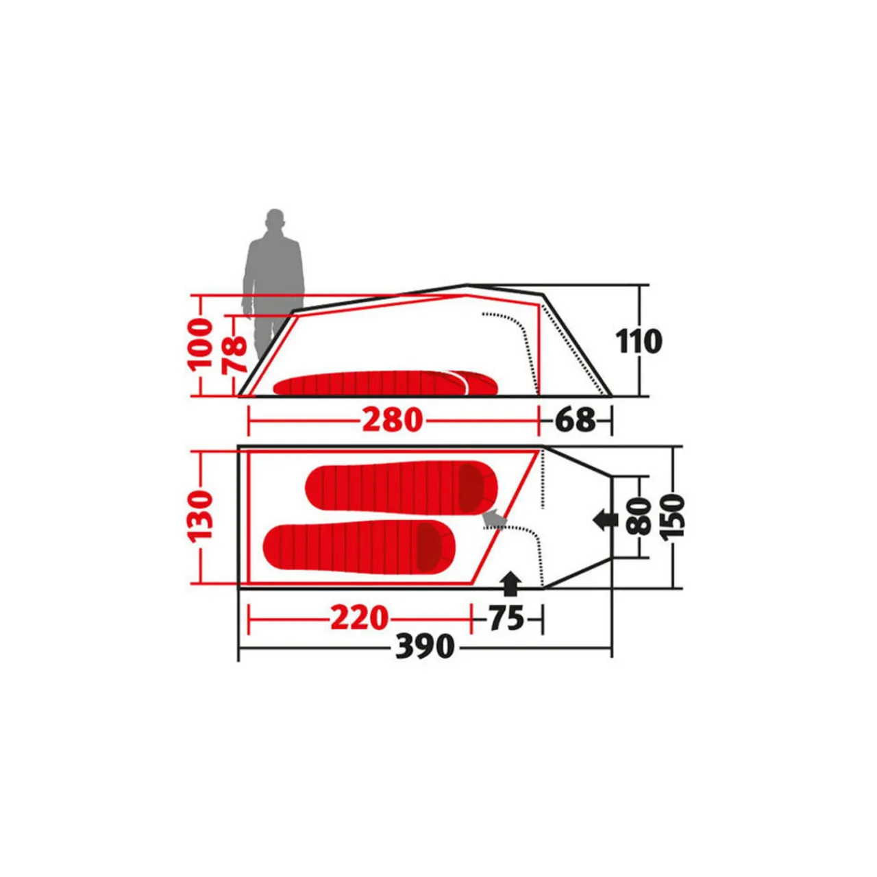 - APEX Ventilation: With the help of apex ventilation flaps air flow is increased between the inner and flysheets, helping regulate humidity and temperature. They are securely sewn into the seams. They do not have to pulled open and can be closed with Velcro fastenings to prevent them flapping noisily in the wind.
