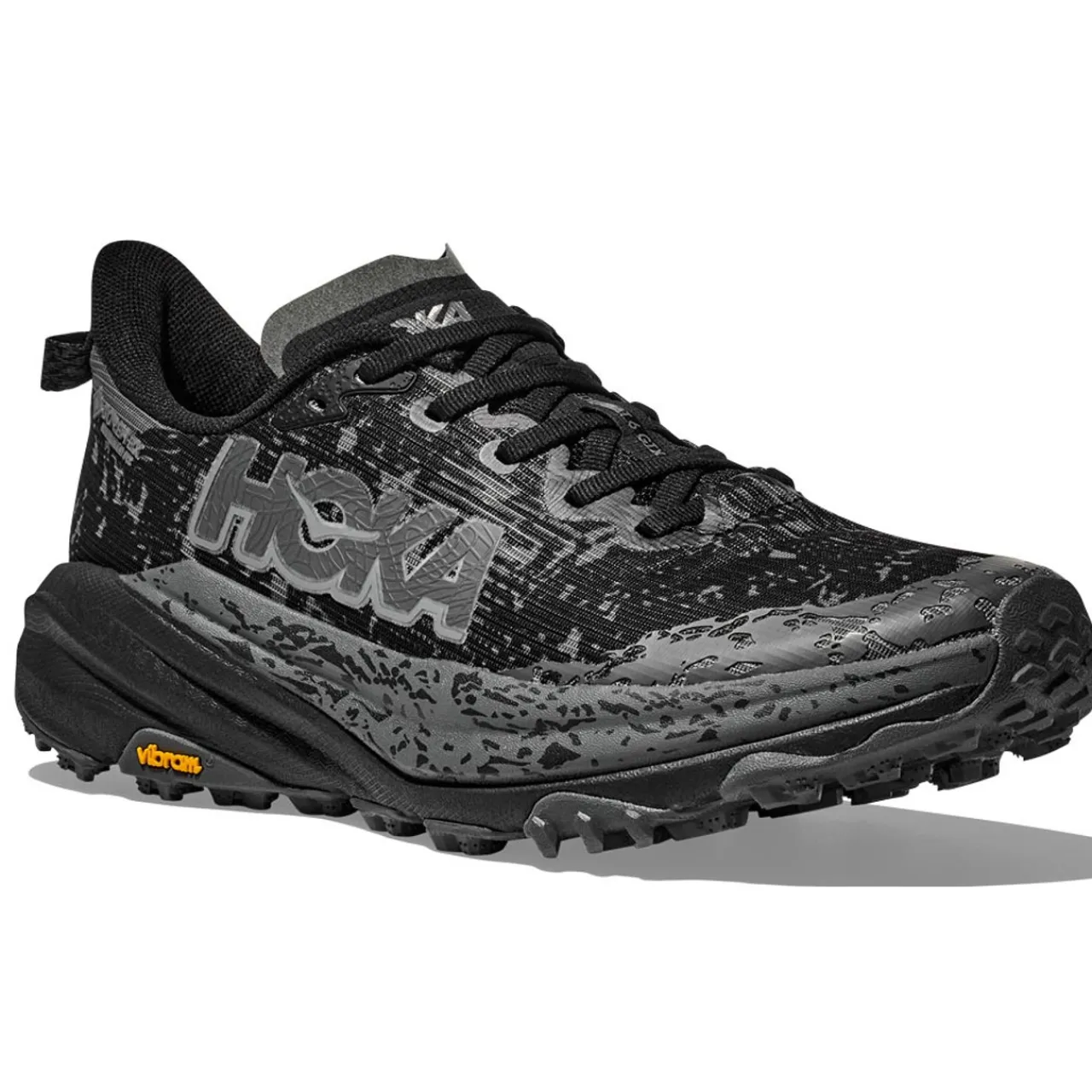 The Hoka Speedgoat 6 GTX is a trail-running powerhouse designed for technical terrain, blending comfort with aggressive traction. It remains lightweight at just 252g per shoe (UK6) without sacrificing durability. With a Vibram® Megagrip outsole and deep 5mm lugs, it grips confidently on wet, rocky, and muddy trails, ensuring stability on tricky surfaces.