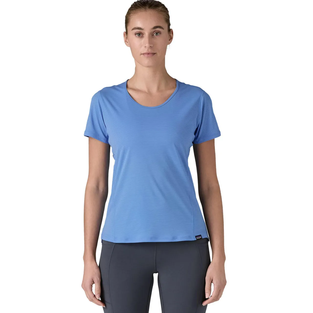 Patagonia’s Womens Capilene Cool Lightweight Shirt, is a lightweight technical tee that is breathable, high wicking and quick drying. It is perfect for warmer conditions and high intensity activities. The soft, silky feel of the fabric makes it comfortable even when you have been working hard and sweating for a while. The tiny grid design increase the breathablility and its ability to wick sweat away and dry quickly.