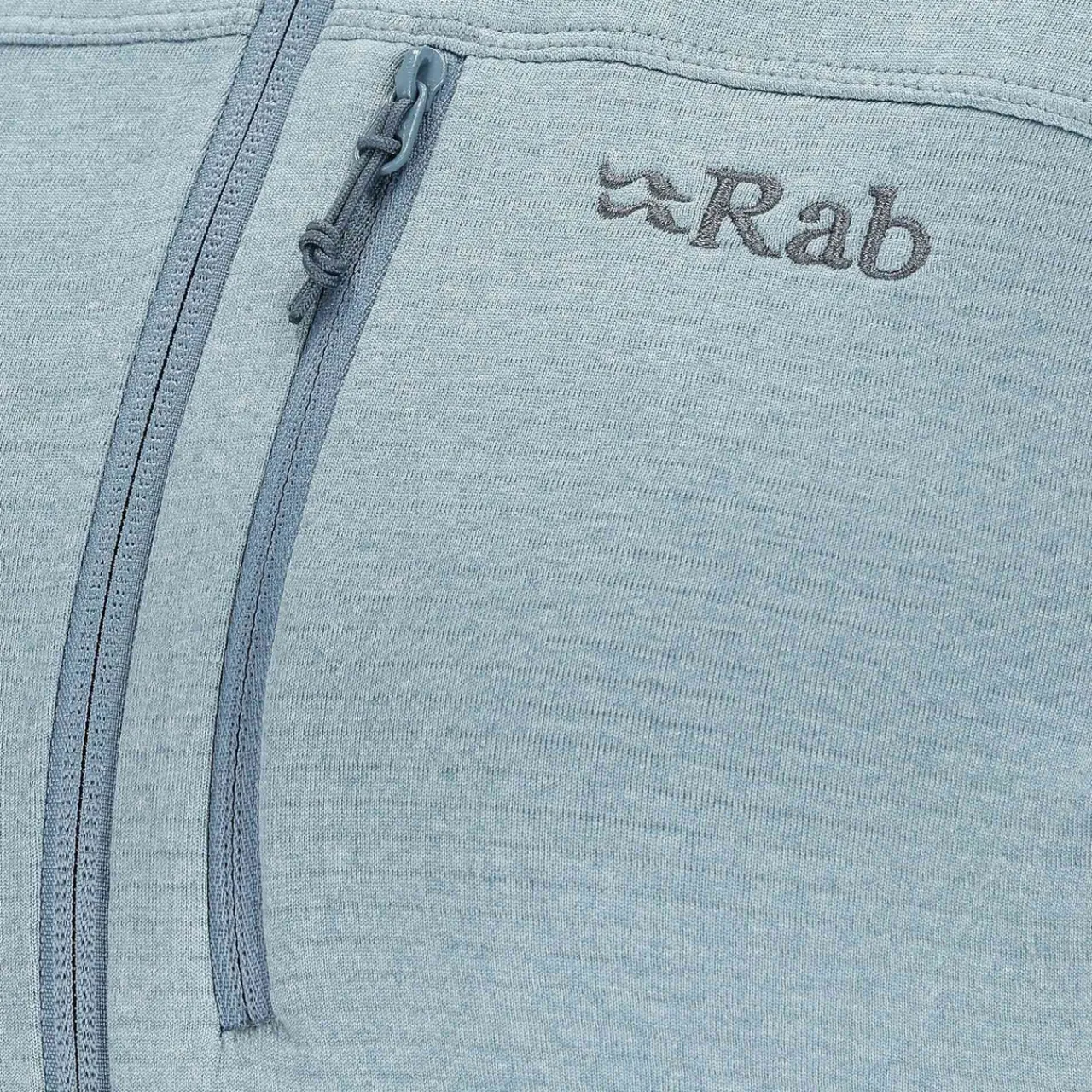 This warm and fast-wicking layer works well as a mid-layer or outer layer on warmer days. Made from Rabs Thermic G material, a grid-backed material that promotes good airflow, helps trap warm air and keeps the weight to a minimum.