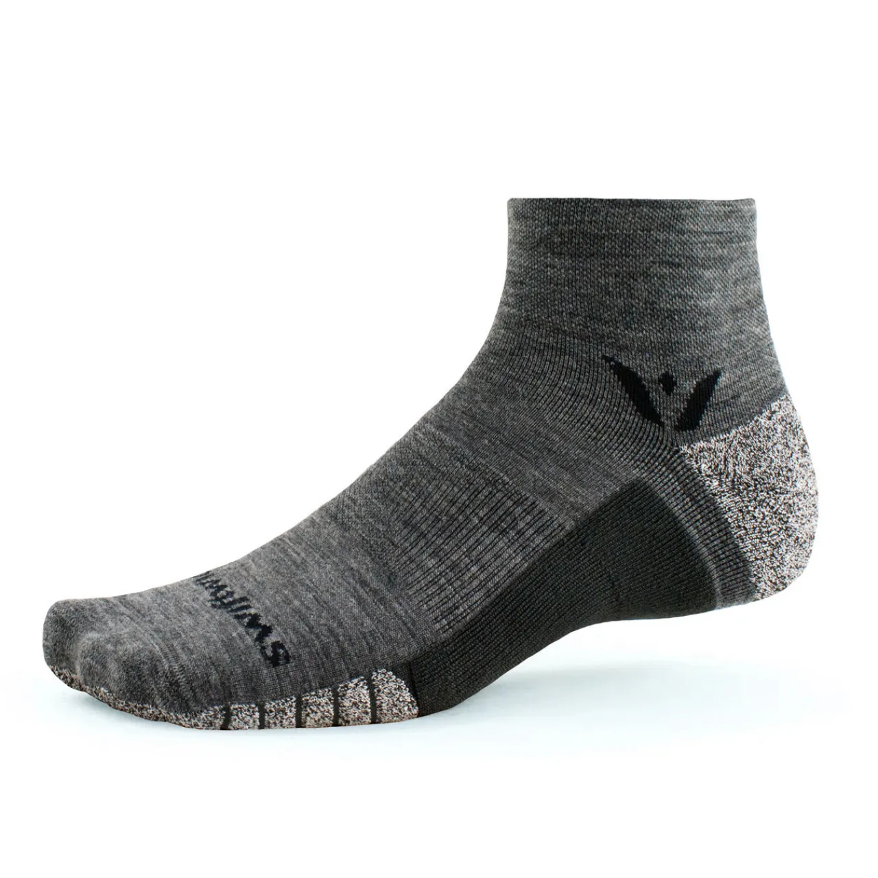 Swiftwick FLITE XT® TRAIL features AnkleLock™ Technology that supports your ankles during quick movements on uneven & varying terrains, while GripDry™ Fiber in the heel and forefoot keeps your feet from sliding in your shoes. But, we didn’t stop there – we blended natural Merino wool with a full Olefin fiber footbed to move moisture away from your feet, keeping them dry and blister-free even during the longest of treks.